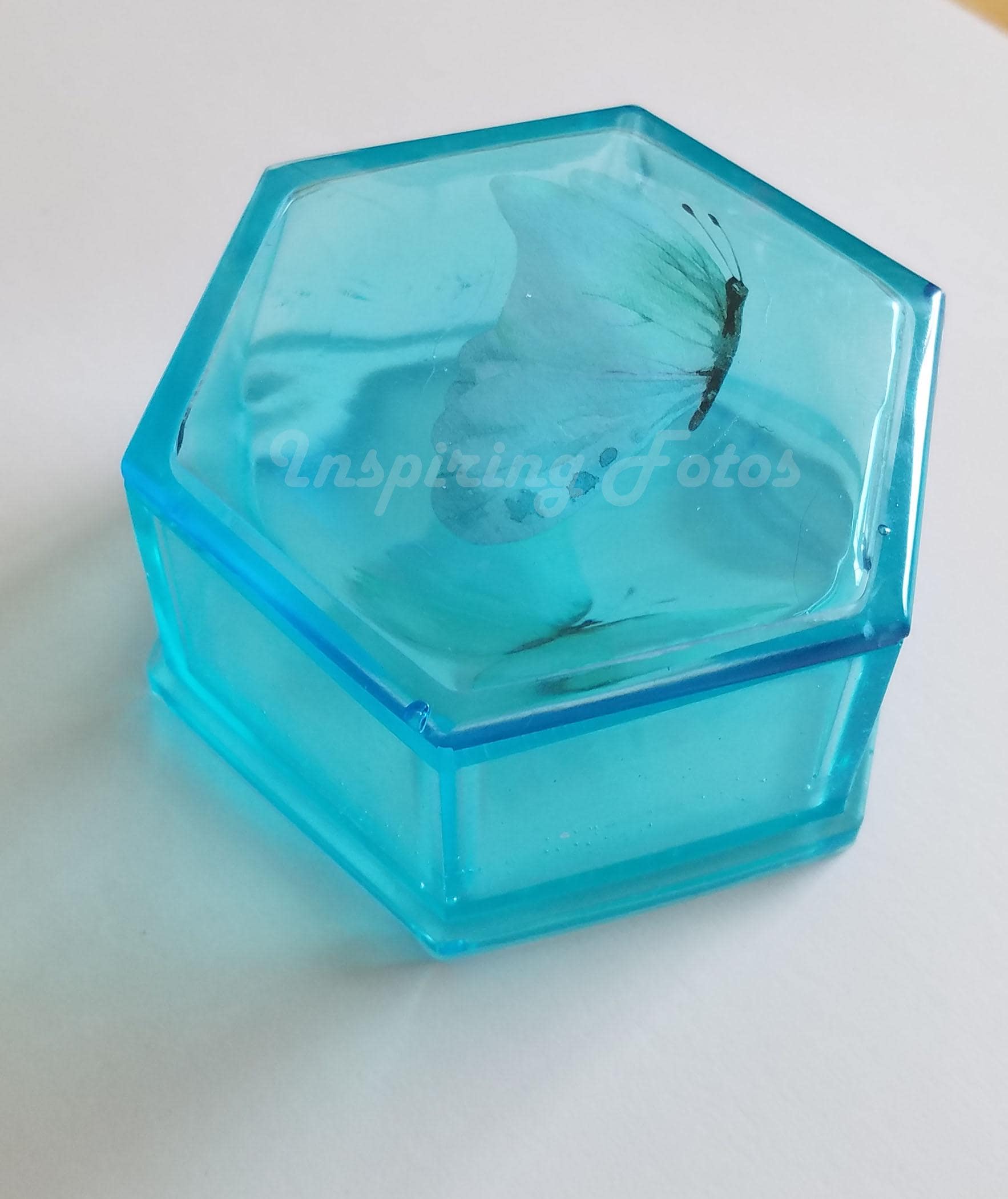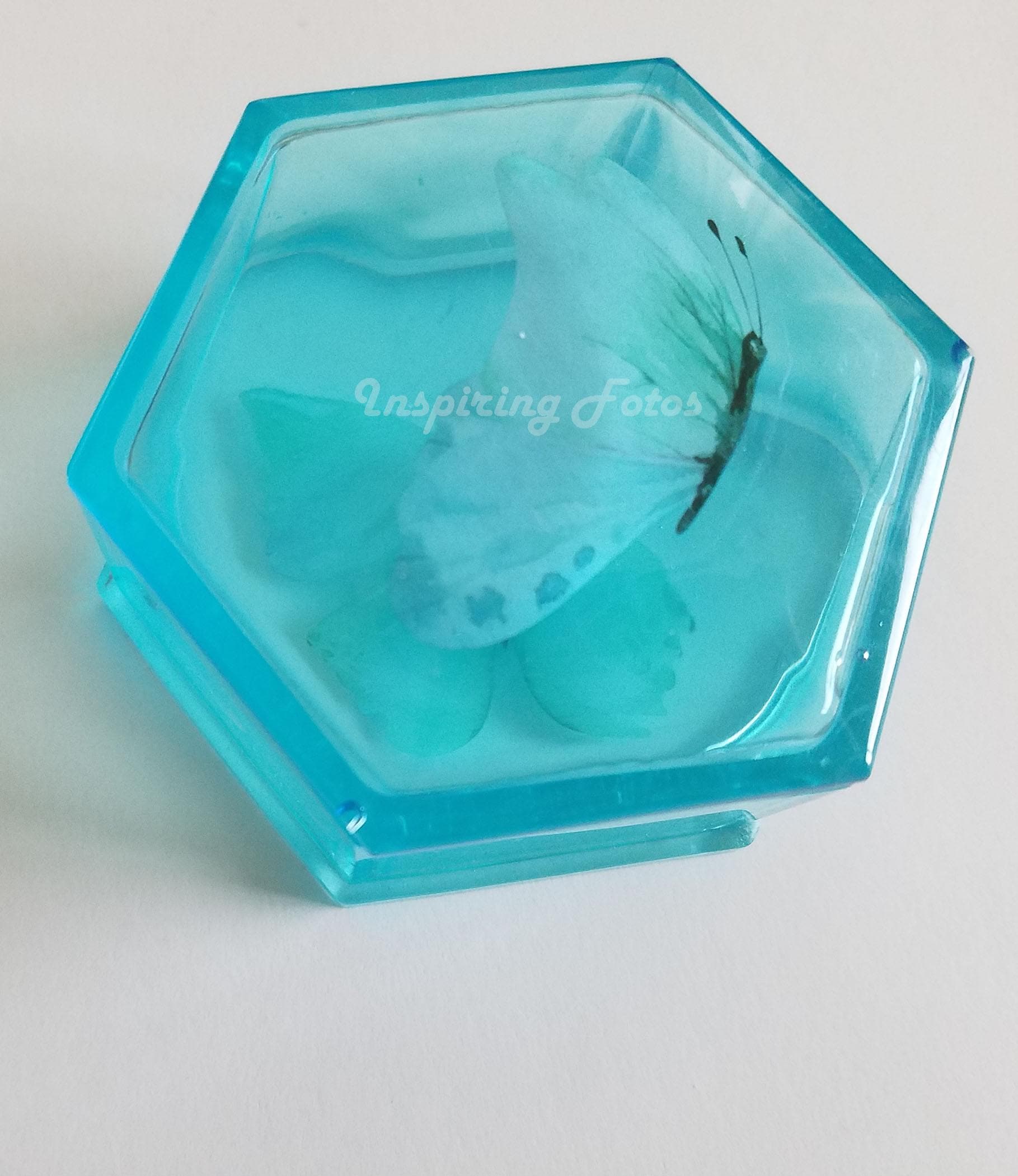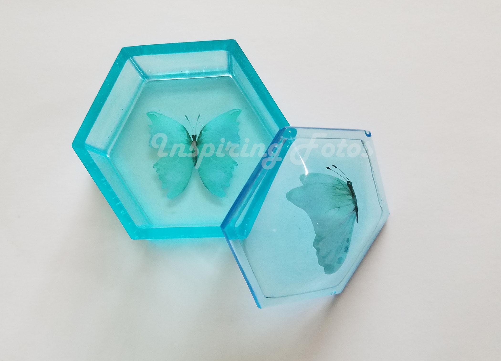 Resin Trinket Box: Hexagon Sky Blue Butterfly