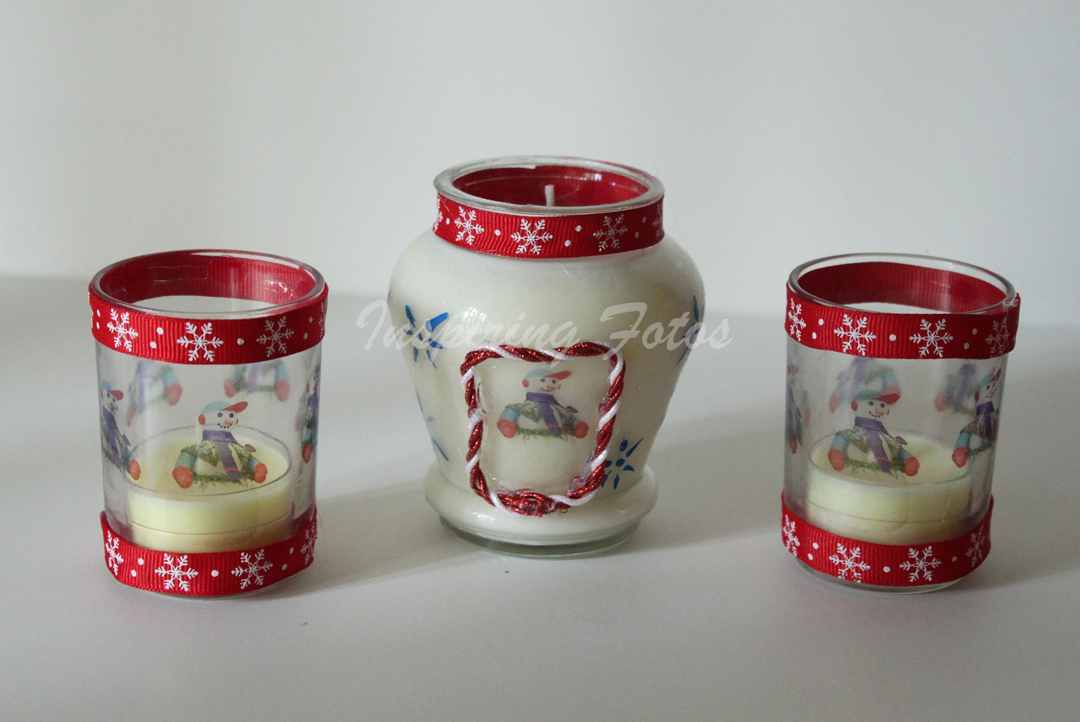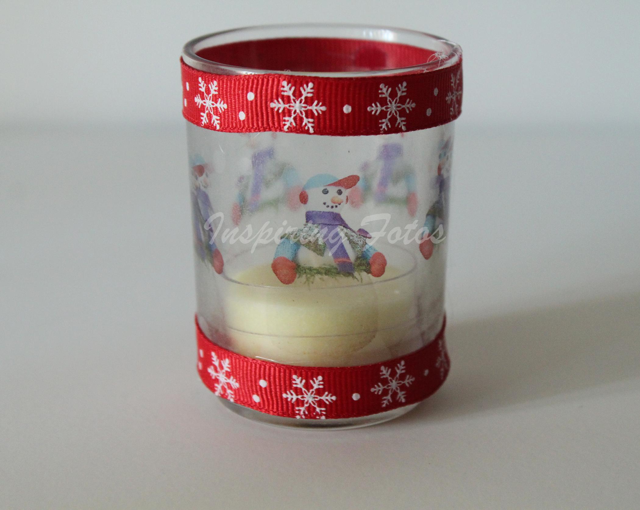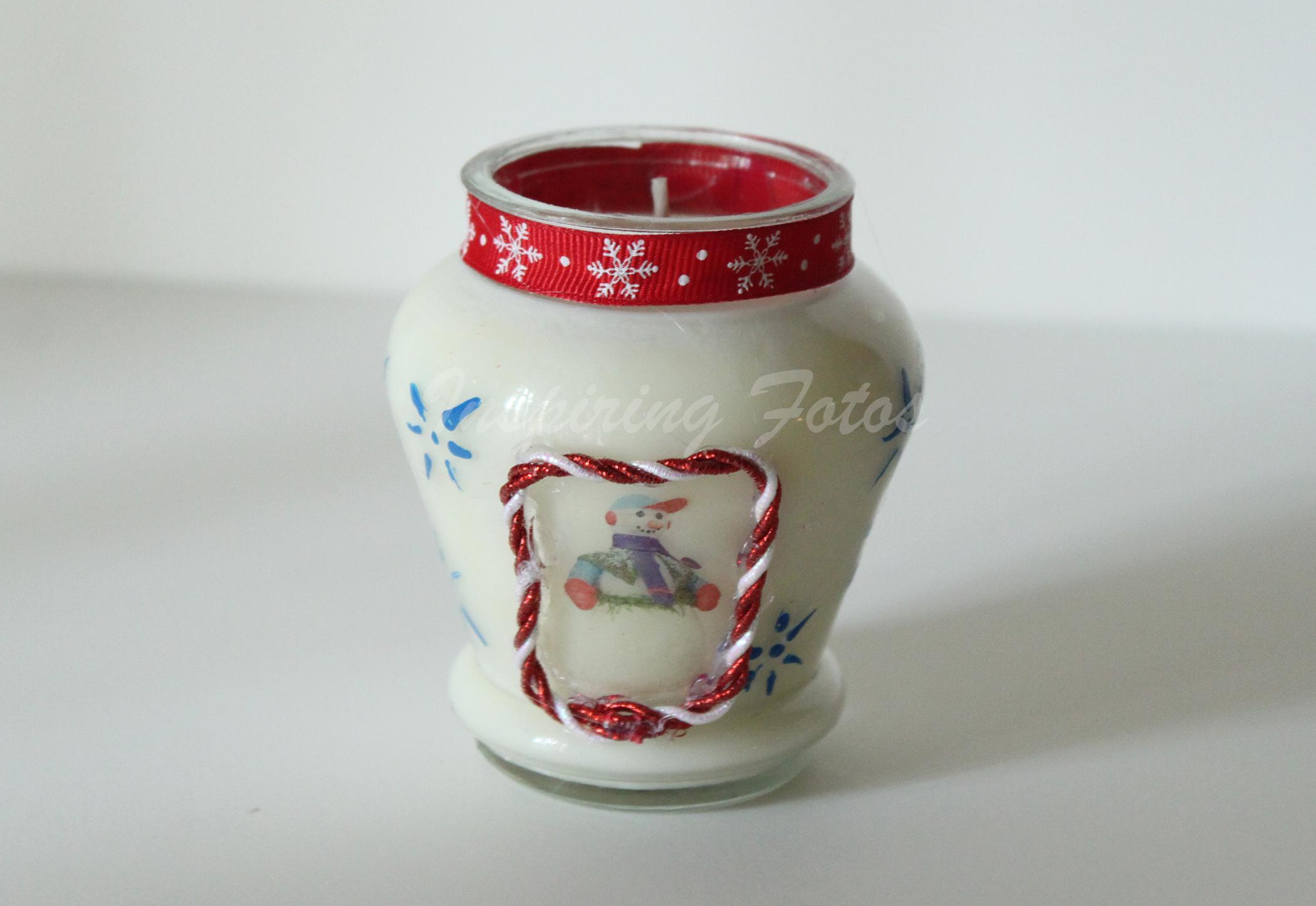 These candles are part of the Touch of Christmas collection. This handmade soy wax candle holiday gift basket has a 3 1/2 oz glass container and two matching tea light holders . The candle is made from soy wax which is a clean burning wax, white in color with vanilla fragrance. The glass holder has a decal photo of a holiday snowman decoration that is wrapped around the glass container trimmed with red holiday snowflake ribbon. This candle provides approximately 35 - 45 hours of burn time.