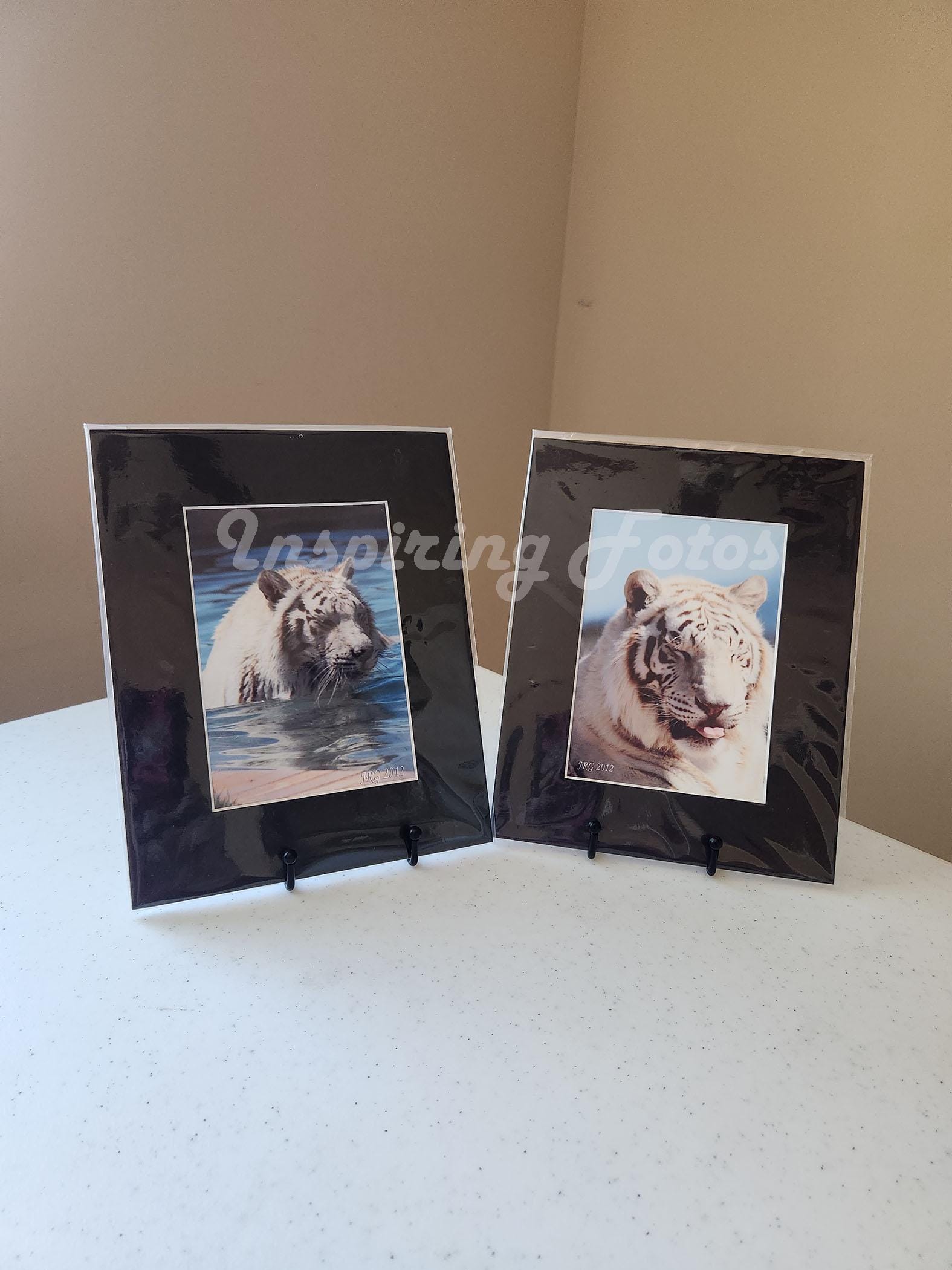 New Items: These 8 x 10-inch matted wall art are part of the Touch of Wildlife collection. These 5 x 7-inch color photos of a white tiger swimming in the water to cool off after a long day of play or chilling on the loft was taken at a wildlife park in Arizona. This matted wall art is a great gift for any occasions for those friends or family members who decorate their homes with a wildlife theme. Bring a Touch of Wildlife into your home.
