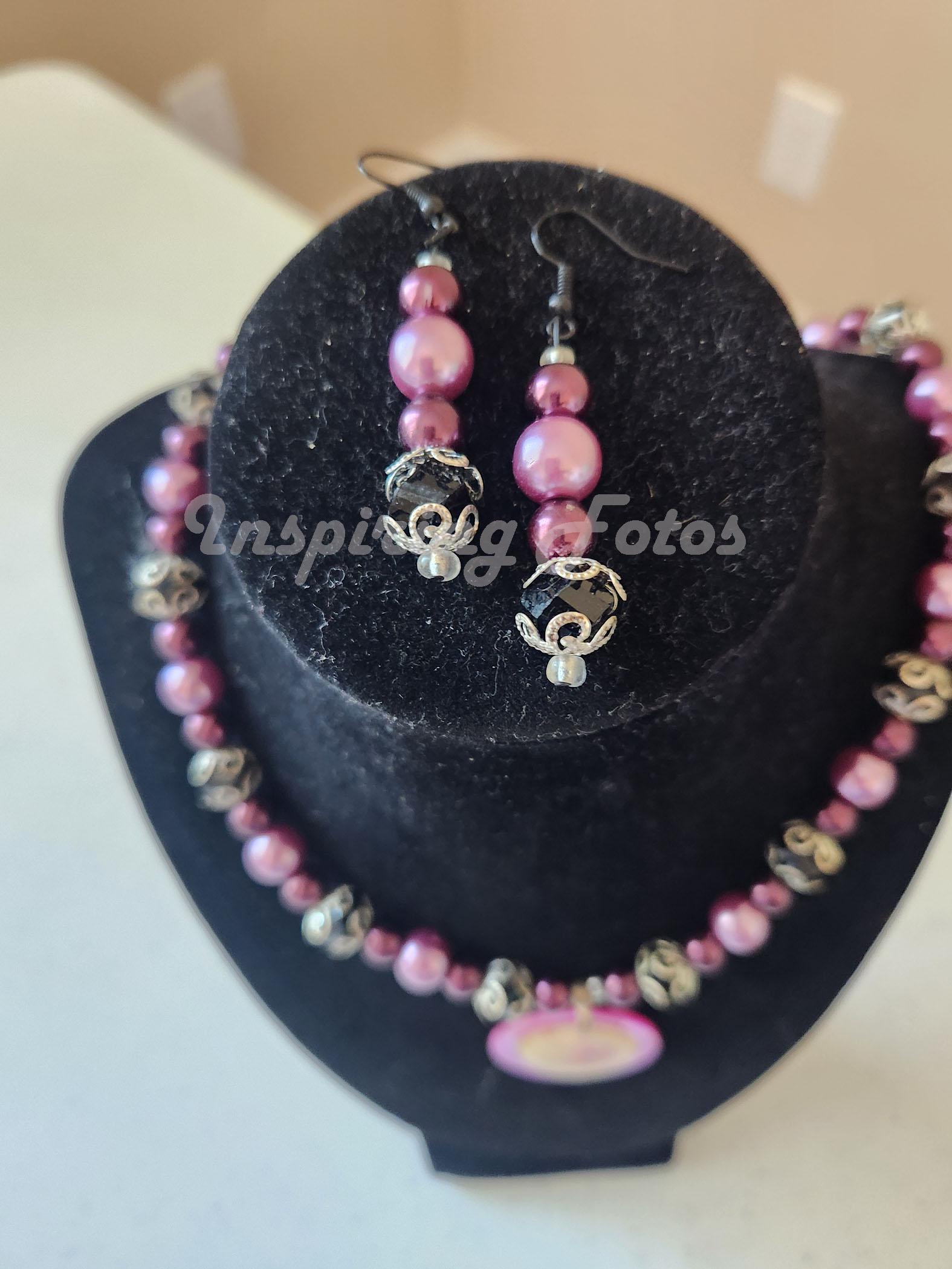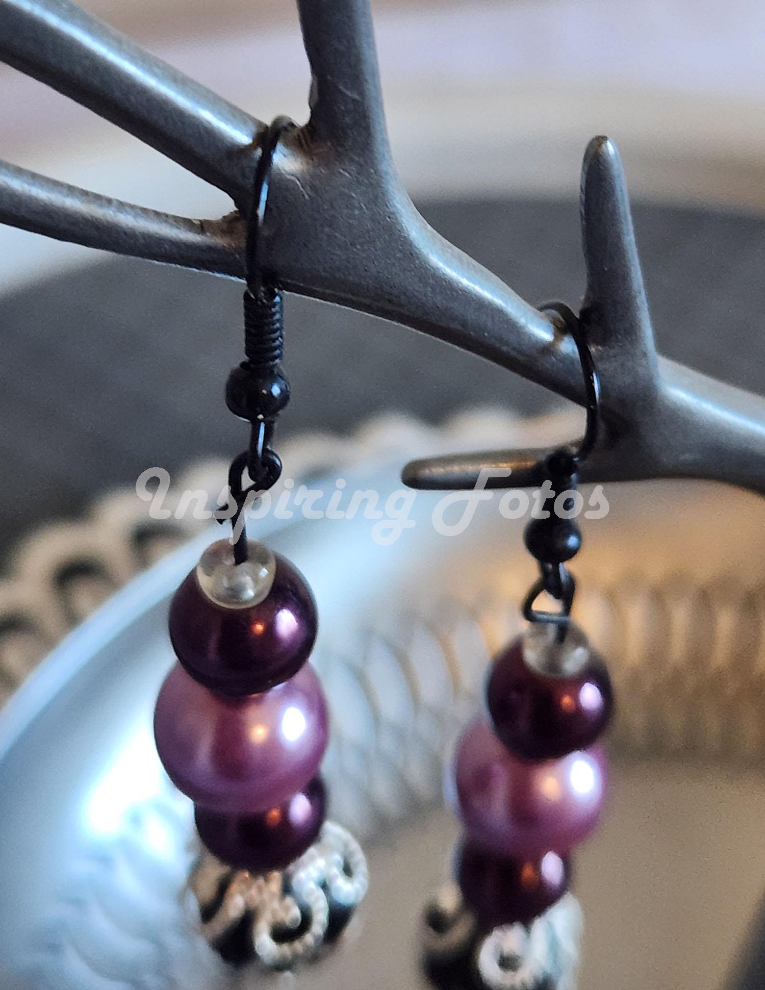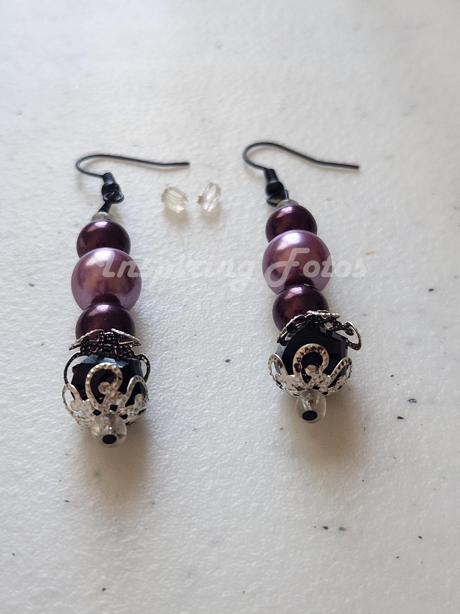 This pair of 2-inch glass bead drop earrings are part of the Touch of Jewelry collection. These drop earrings are made with burgundy, purple and black with metal caps glass beads. Matching necklace is sold separately in the jewelry section.