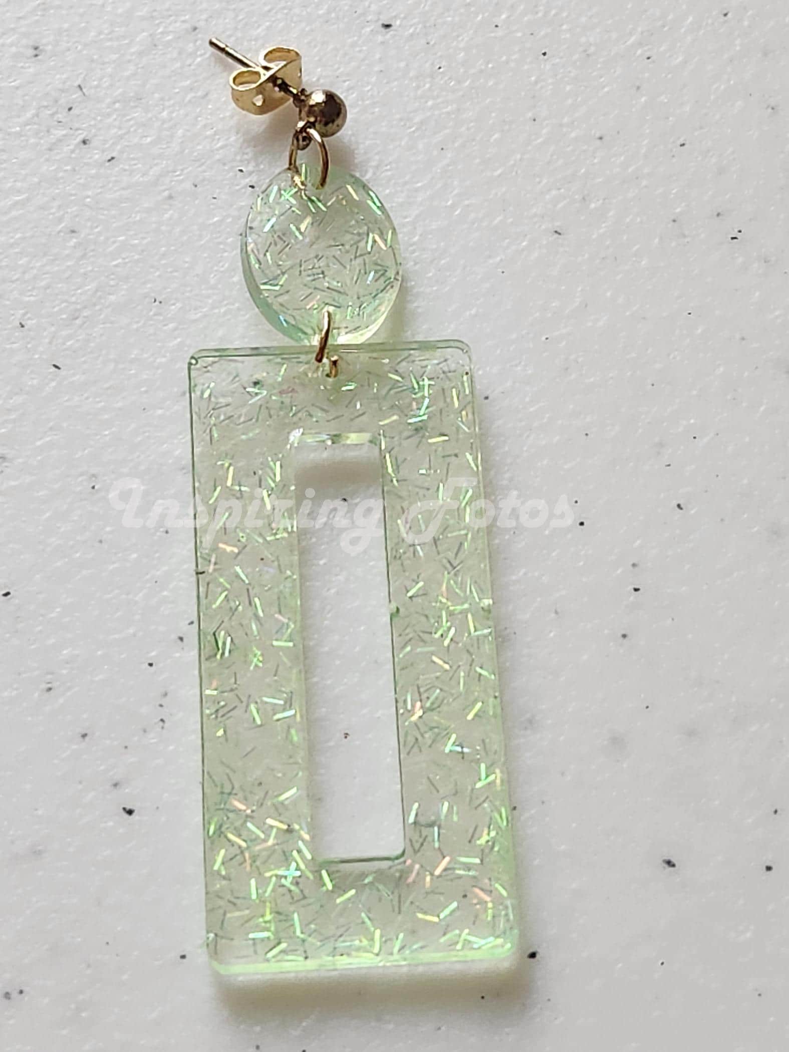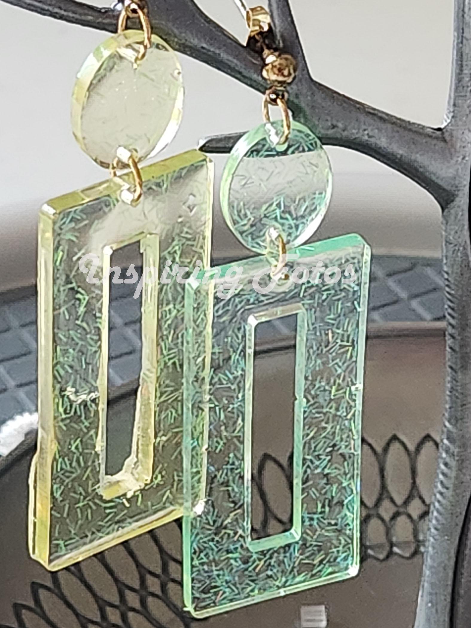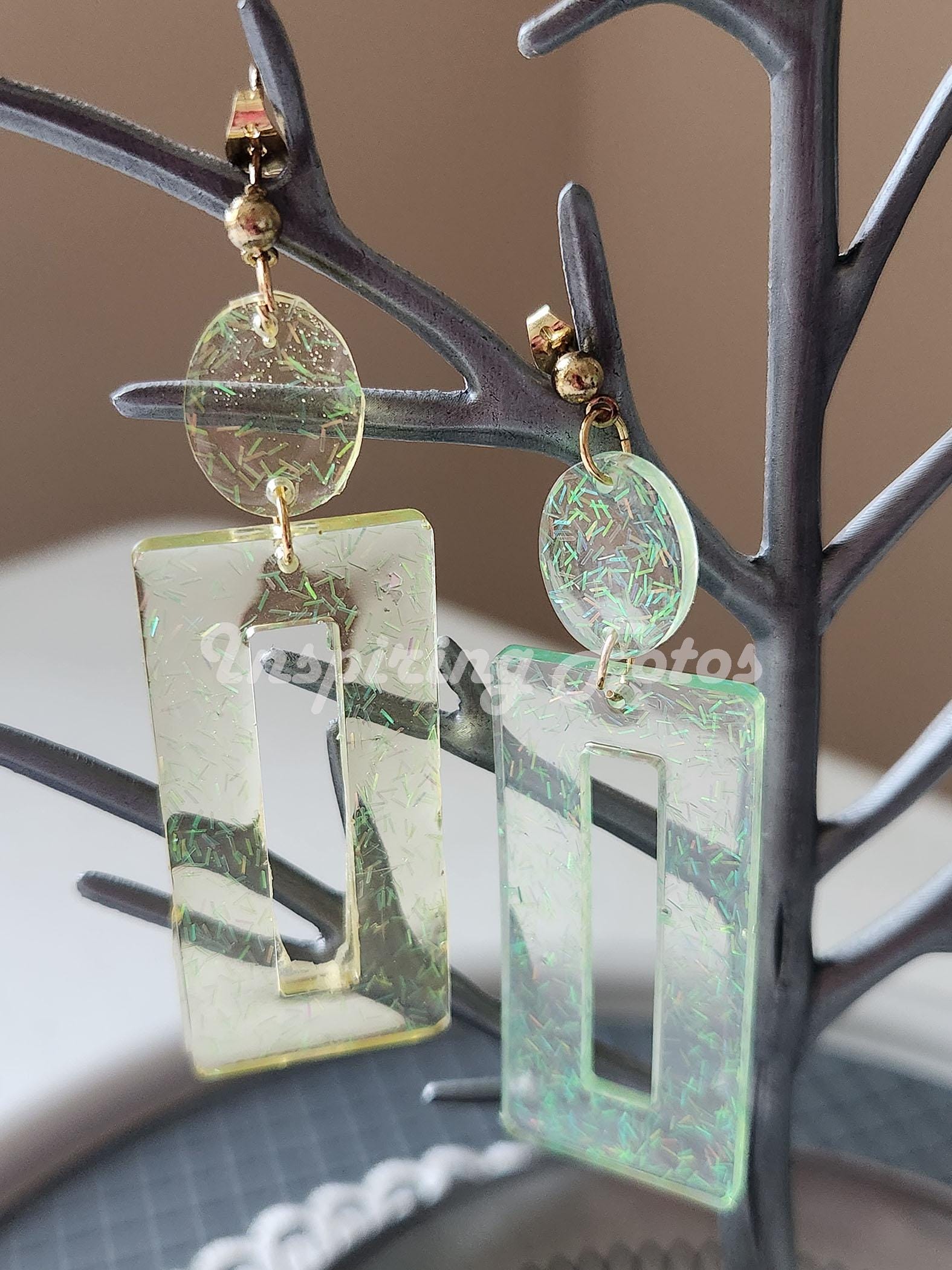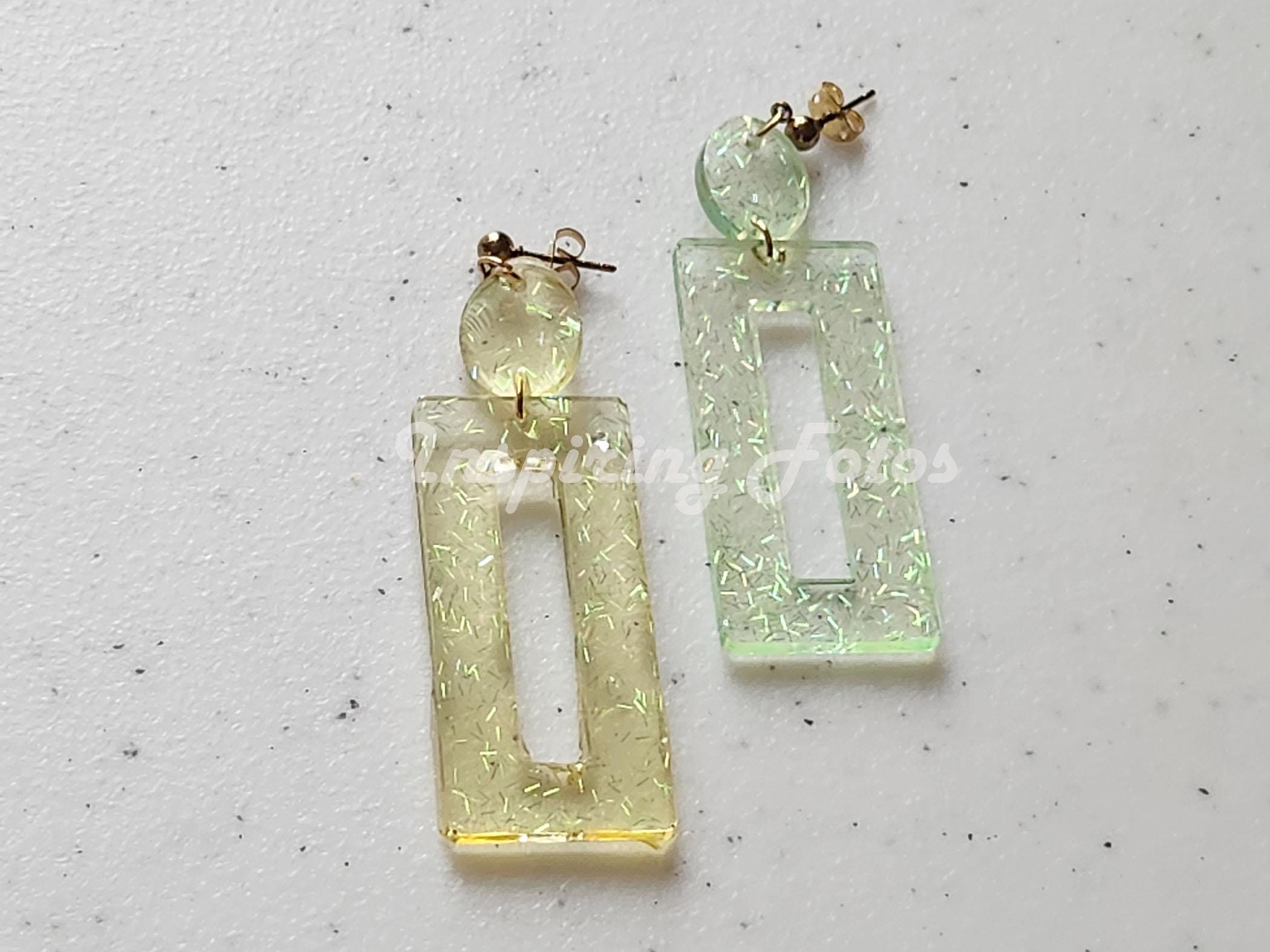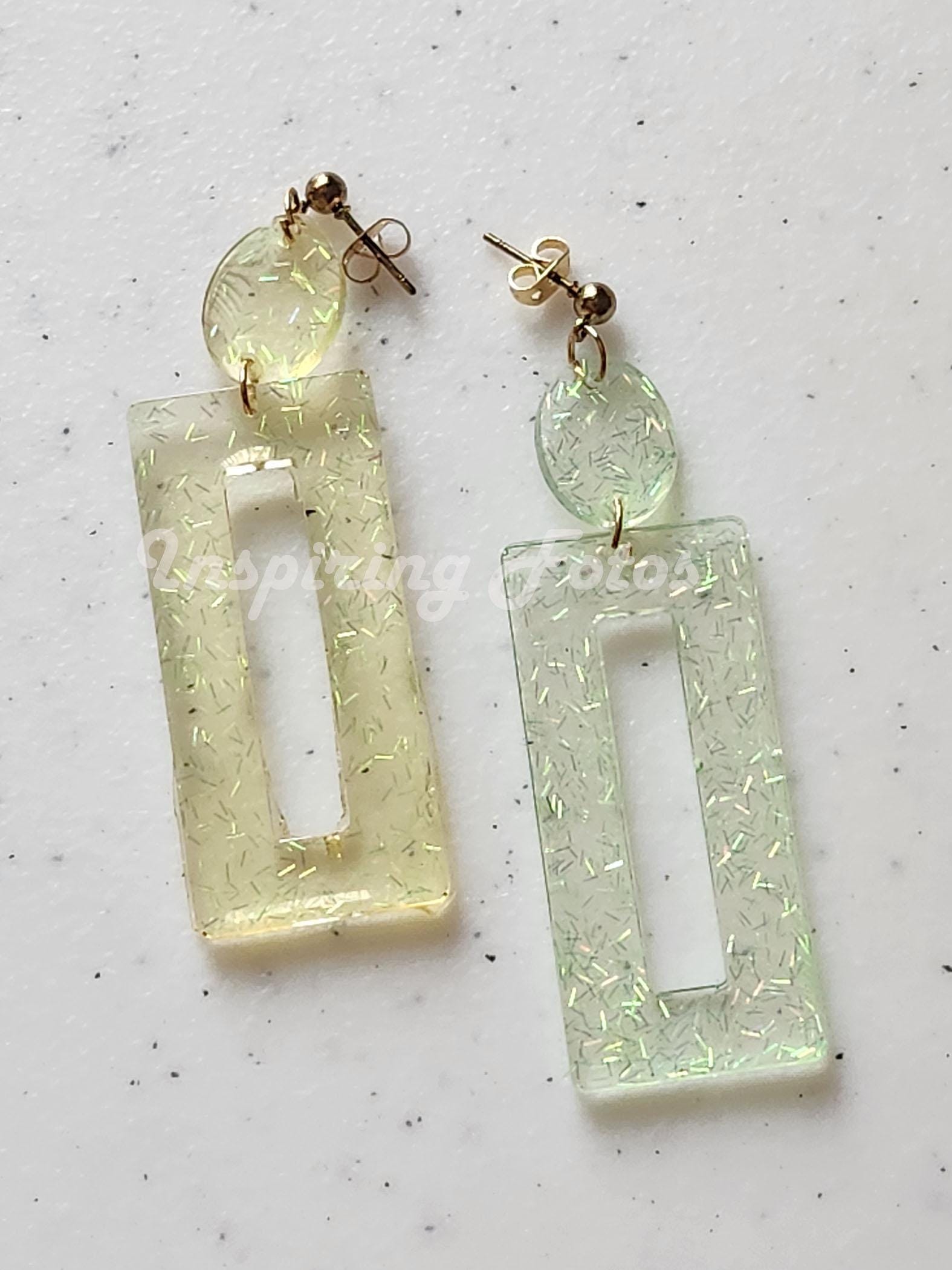 This resin dropped rectangle earrings are part of the Touch of Jewelry collection. These resin drop earrings are 2 1/2-inches in length with green strips. Perfect gift for any occasion.