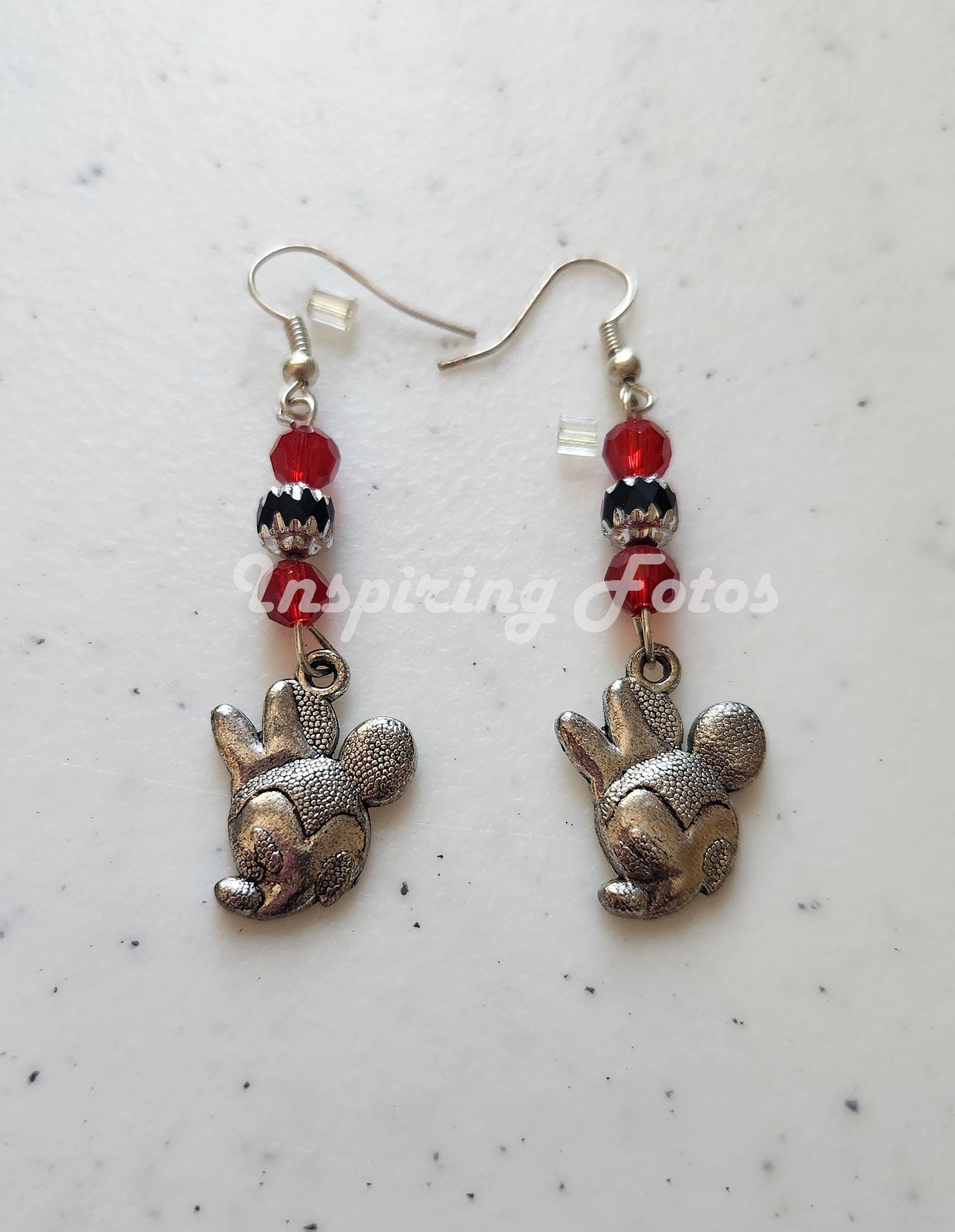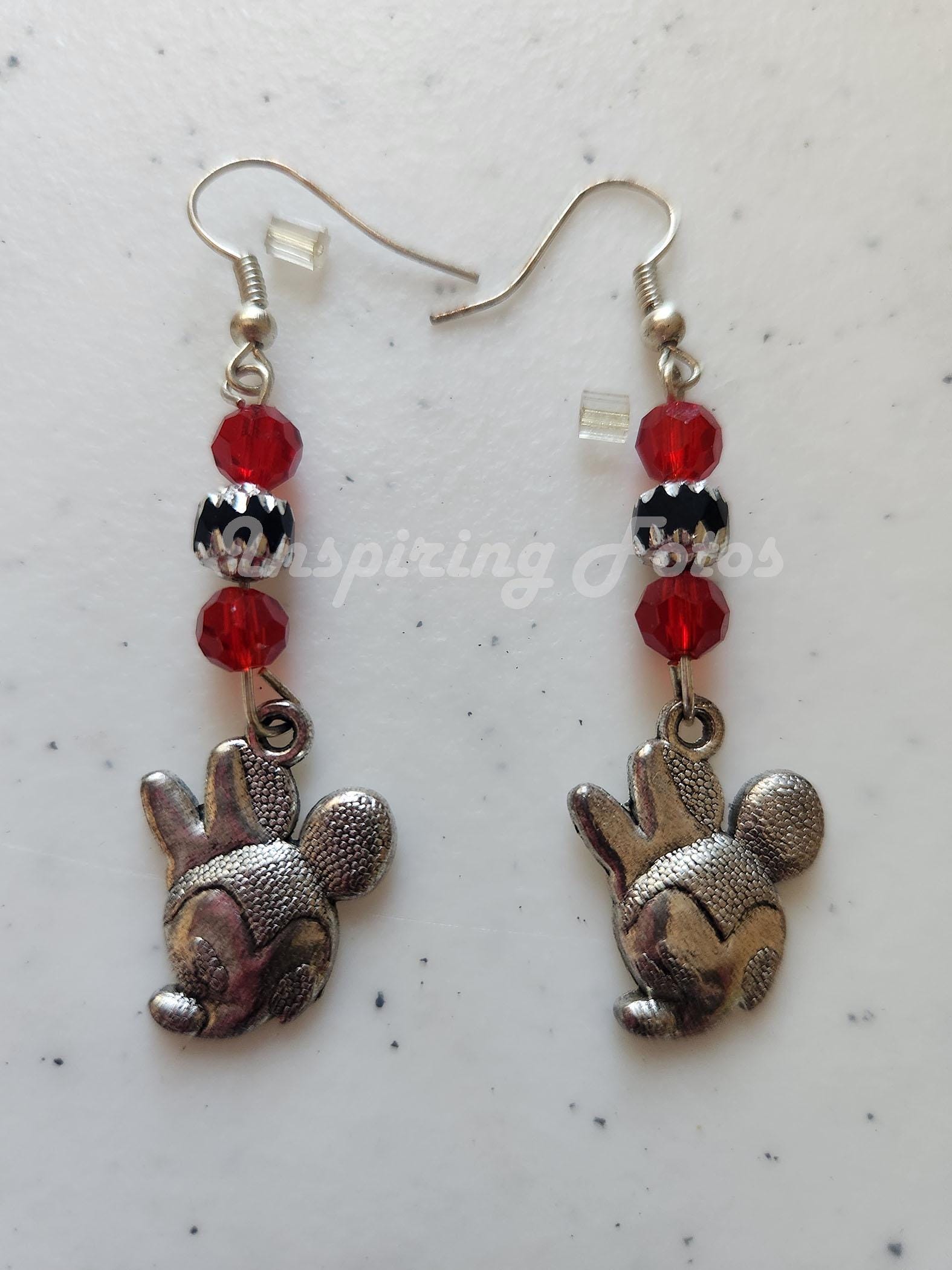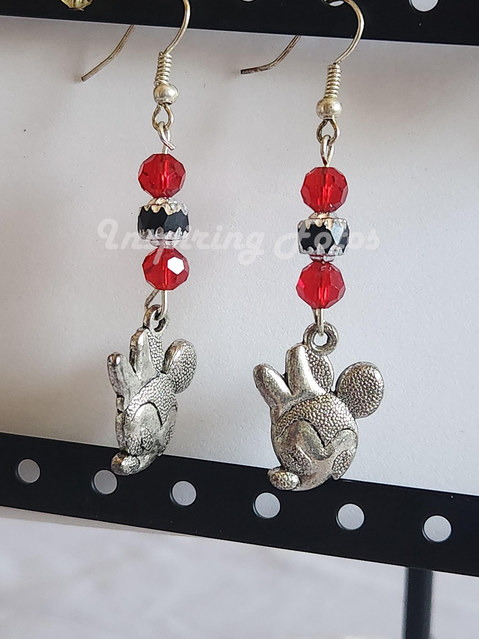 This 2-inch drop beaded Mini Mouse charm earrings are part of the Touch of Jewelry collection. This pair of dropped earrings are made with glass red beads and black metal cap beads with a silver Mini Mouse charms head. This is a perfect gift for any Disney lovers or occasion.