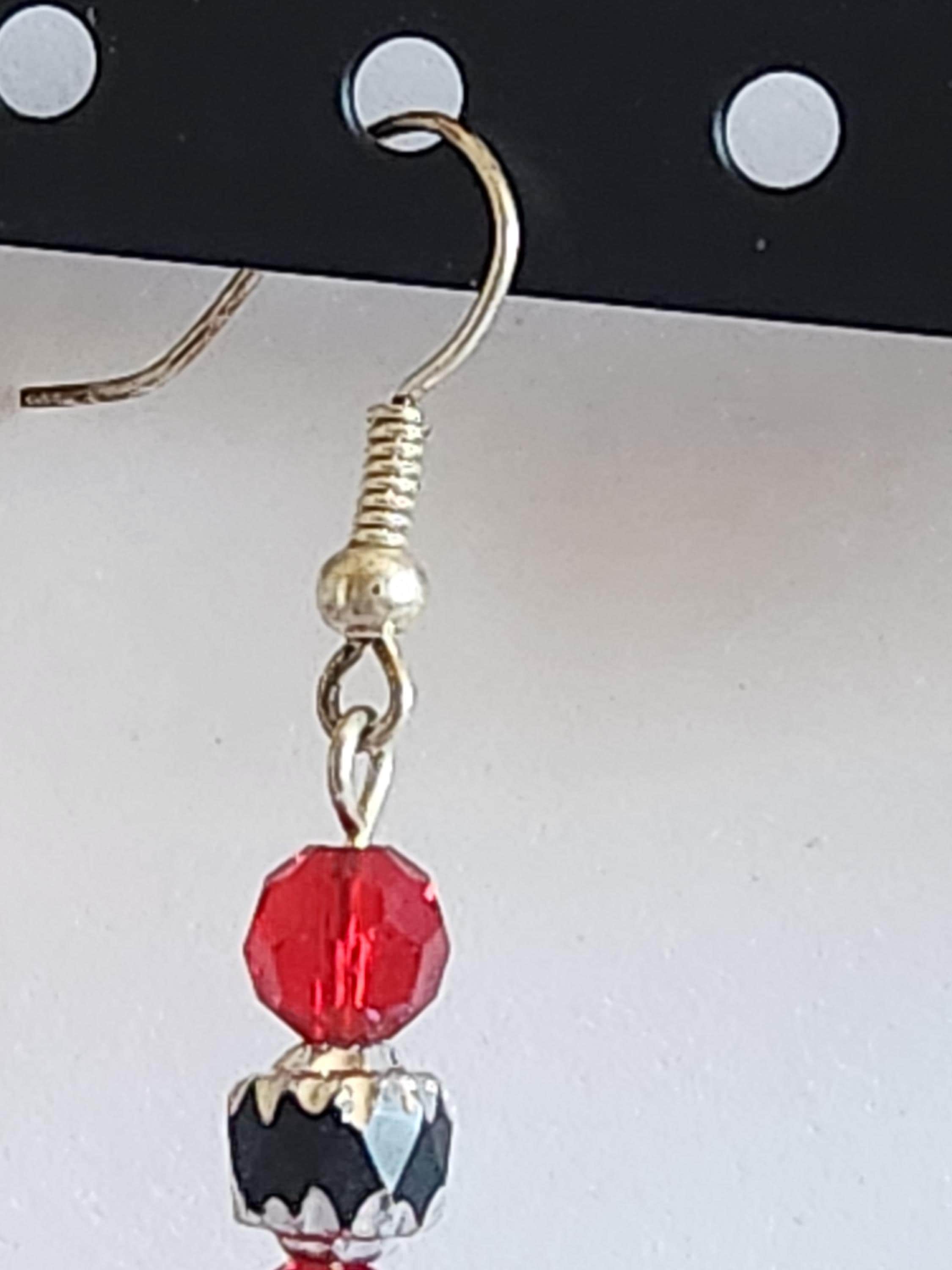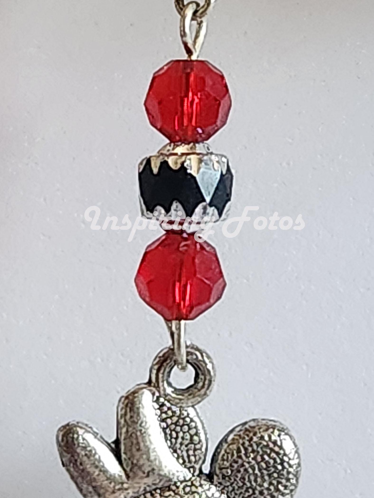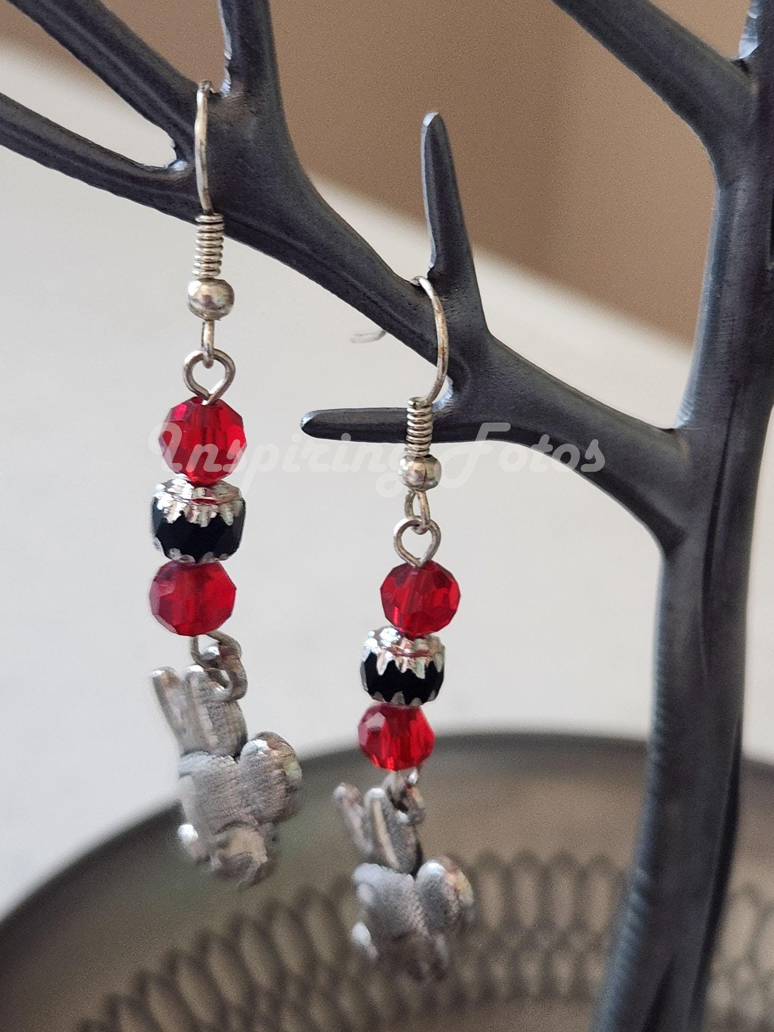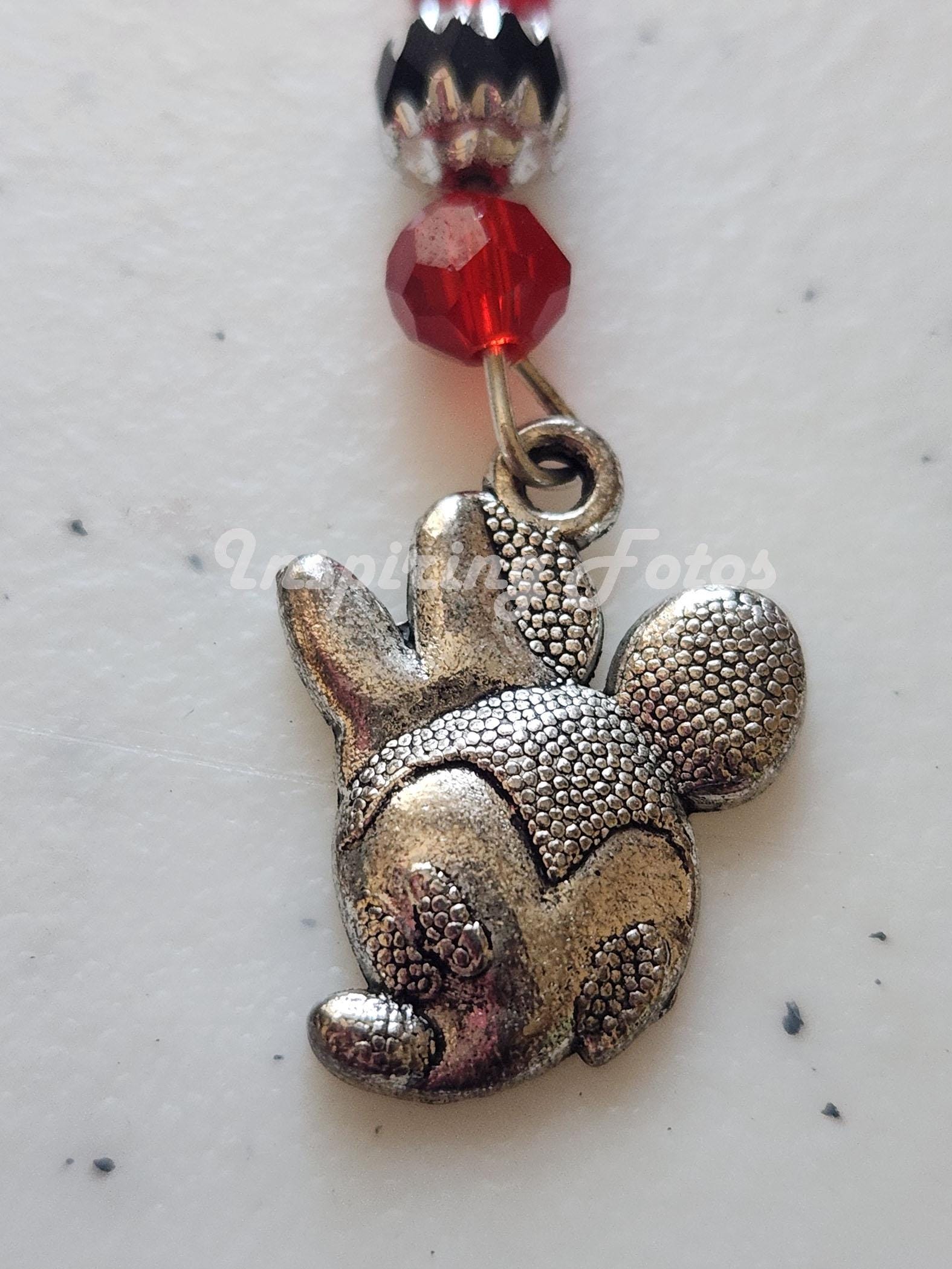 This 2-inch drop beaded Mini Mouse charm earrings are part of the Touch of Jewelry collection. This pair of dropped earrings are made with glass red beads and black metal cap beads with a silver Mini Mouse charms head. This is a perfect gift for any Disney lovers or occasion.