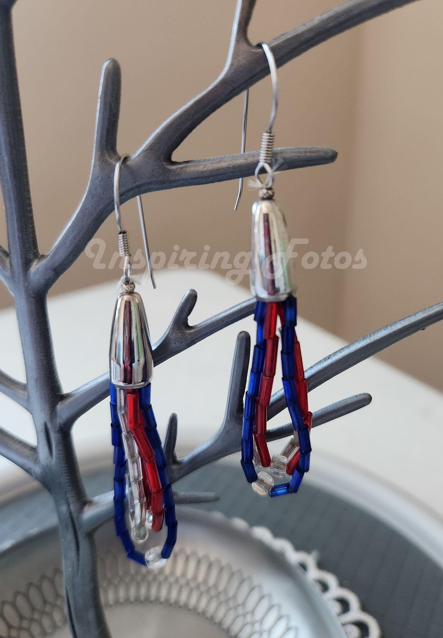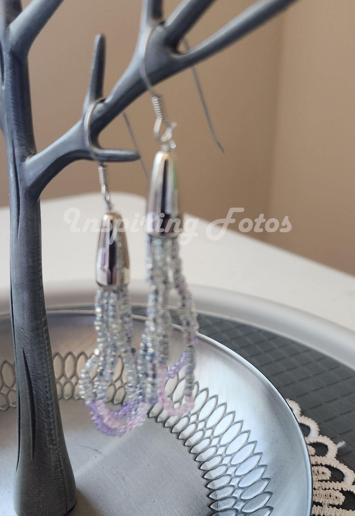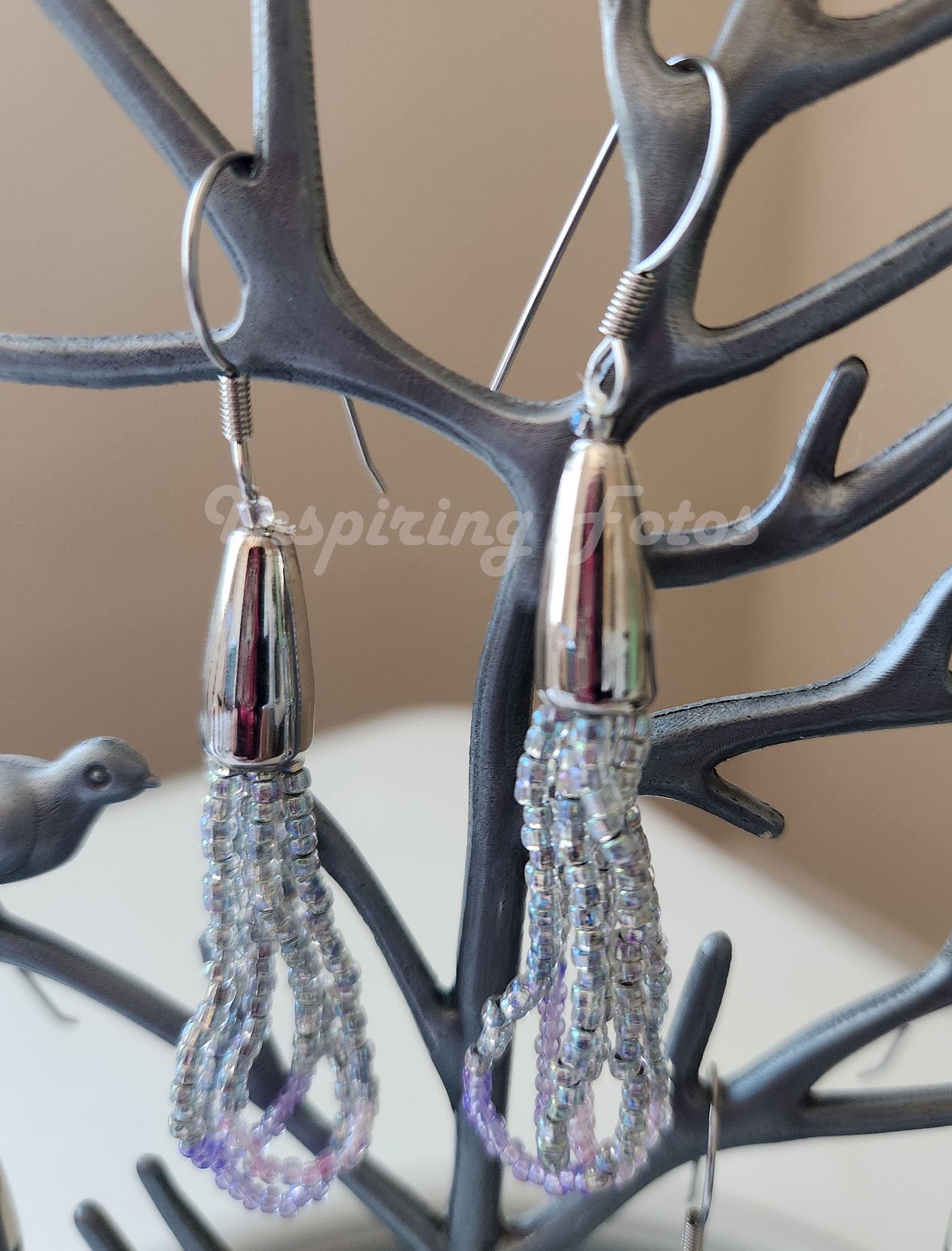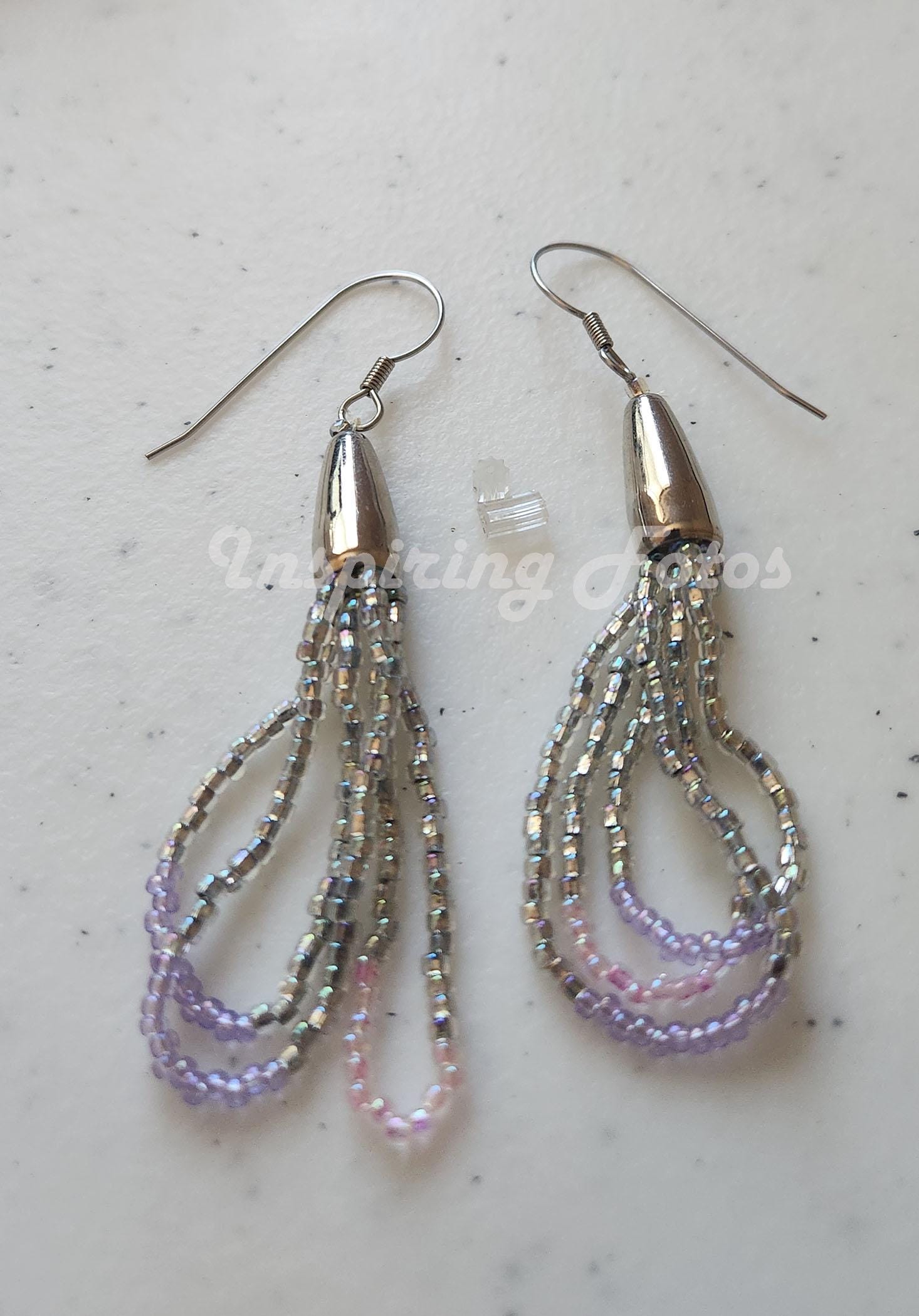 These hand beaded tassels drop loop earrings are part of the Touch of Jewelry collection. They are 2 1/2-inches long double or triple loop tassel earrings made bugle beads or seed beads in various colors.