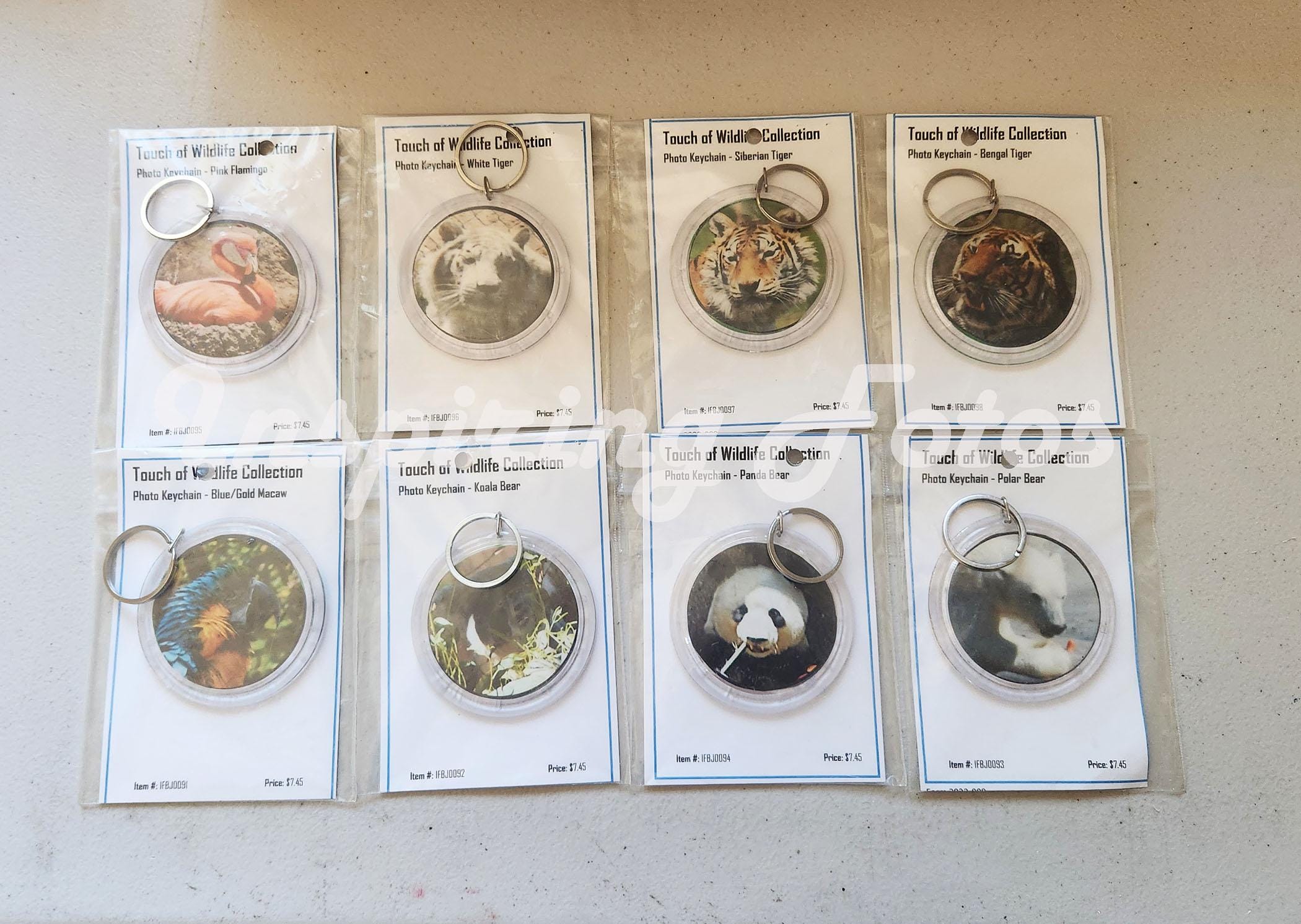 These photo keychains are part of the Touch of Wildlife collection. These circular plastic photo keychains are 2 3/4-inches in diameter. The photos were taken in San Diego, CA and at the Wild Animal Park in Arizona. These keychains will be a great gift for wildlife lovers. They can use them for their keys or display them on their backpacks or tote bags. Perfect gift for a stocking stuffer.