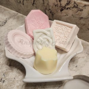 These handmade goats milk soaps are part of the Touch of Roses and Botanicals Collection. These bath soaps come in various colors, sizes and fragrances to choose from. See the list of variations of 3 goats milk bath soaps to choose from below: